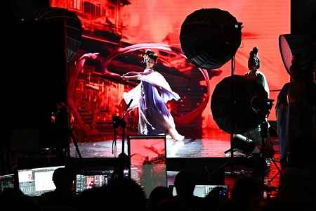 “家人们,刚才这段《春江花月夜》的编舞灵感,来自张若虚诗中‘江畔何人初见月’的意境。接下来,咱们用弹幕投票,是接着看古典舞,还是来段《霍元甲》混搭风?”主持人冯柏烨在节目间隙与观众进行了互动。瞬间,“霍元甲!”“古典舞YYDS!”等评论刷屏。几分钟后,音乐切换,舞者们从直播间两侧一一入镜,以古典身法演绎现代节奏,直播间热度再次攀升。