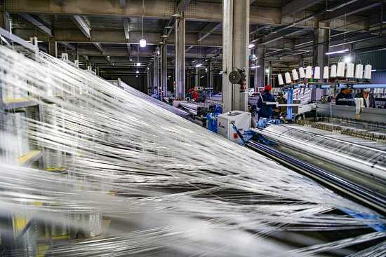 4月19日,工人在内蒙古天皓玻纤有限责任公司的玻璃纤维生产线上作业。新华社发(康文魁 摄)