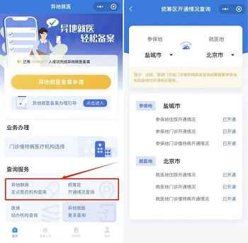 除了申请备案外,参保人还可以通过小程序查询各统筹区及异地联网定点医药机构的开通情况。