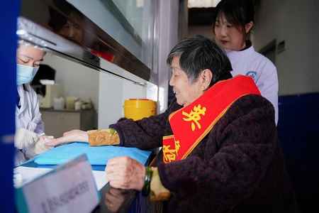 蒙林妈妈、87岁的黄玉兰在接受义务体检。受访者供图