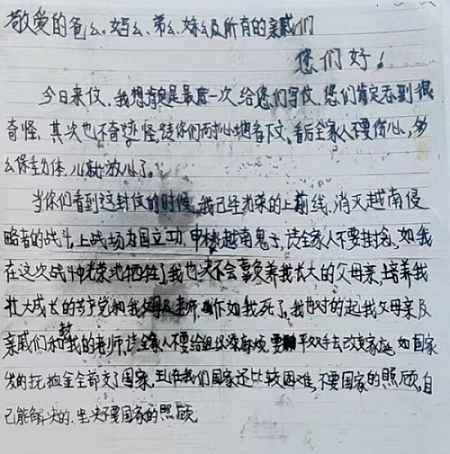 他还记得,在部队时有一次到陕西省武功县送通知,刚到时家属还在说笑,当抚恤金和通知书摆到桌上时,那位妈妈的手就开始抖,爸爸则轻轻地问:“光荣是什么意思?我儿子光荣是什么意思?他不幸光荣了,是不是死掉了?”